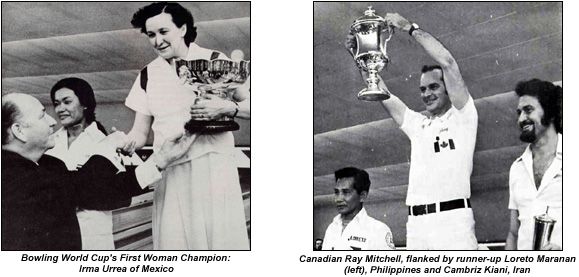 On the men's side, defending champion Roger Dalkin was back, but a heavy work schedule (he was now running the student union at Georgia Tech after graduating) had kept him from reaching the dominant form he displayed in Hong Kong. Honors instead fell to Canadian Ray Mitchell, a 40-year-old telephone company executive from Toronto. Mitchell, who averaged 207 over the final stages of the tournament, managed to eke out a 550-532 victory over Filipino police officer Loreto Maranan in the televised men's finals.