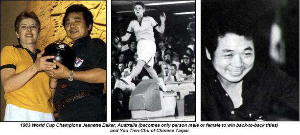 Jeanette Baker arrived to defend her title in Mexico City after what can only be described as a horrific year. Following her victory in Scheveningen, Baker took an office job with AMF in Australia. The Australian Tenpin Bowling Congress took exception, saying that the paid employment with a bowling company made Baker a "professional." (Remember, these were still the days of Avery Brundage-inspired "pure" amateurism.) An appeal to the Federation Internationale des Quilleurs, bowling's international governing body, restored Baker's amateur status but not before she had missed out on the 1983 FIQ World Championships.