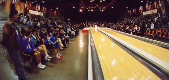 The maestro of this most unusual World Cup was Jean Jacques Le Terrec, owner of Bowling LeMans. LeTerrec masterminded the sensational finals by staging them arena style for the first time. LeTerrec booked Le Forum, a huge convention center, for the grand finals. He had reasoned, correctly, that his modest sized center could not possibly accommodate all the people who might want to witness the event. AMF installed two brand new lanes on the floor of the huge arena. TV technicians hung a battery of more than 30 lights, bathing the scene with a mellow glow.